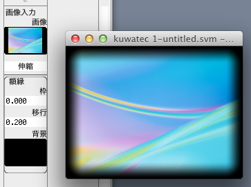 負数にすると、「画像」が枠になり、「枠」の外側で徐々に合成します。