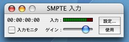 コンピュータの音声入力装置を利用して、外部から SMPTE タイムコードを入力することができます。